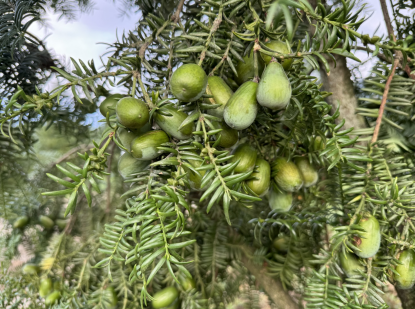 步入林间,一股清幽独特的榧香扑面而来,带着山林特有的清新。据悉,这片香榧基地总面积达87亩,自2016年起开始栽种香榧树苗。七年来,基地工作人员秉持科学管理理念,悉心照料每一株树苗,从土壤改良到水肥调控,从病虫害防治到修剪养护,每一个环节都倾注了大量心血,终于在2023年迎来首次收获。由于香榧独特的“一年开花,两年结果,三年成熟”生长周期,初始采摘仅收获2000余斤青果,而今年,这片香榧林才真正迎来了全面丰收的时刻。